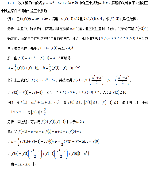 由于二次函数的解析式简捷明了,易于变形(一般式、顶点式、零点式等),所以,在解决二次函数的问题时,常常借助其解析式,通过纯代数推理,进而导出二次函数的有关性质。